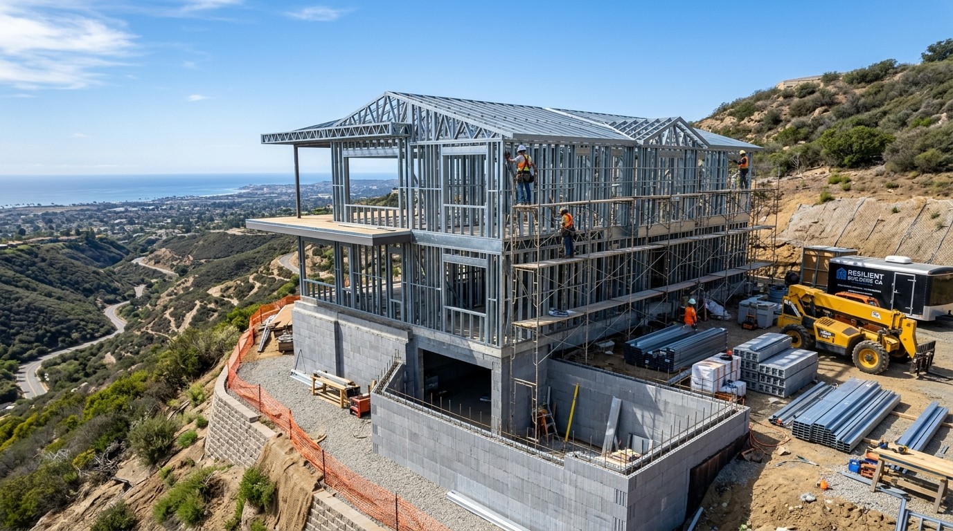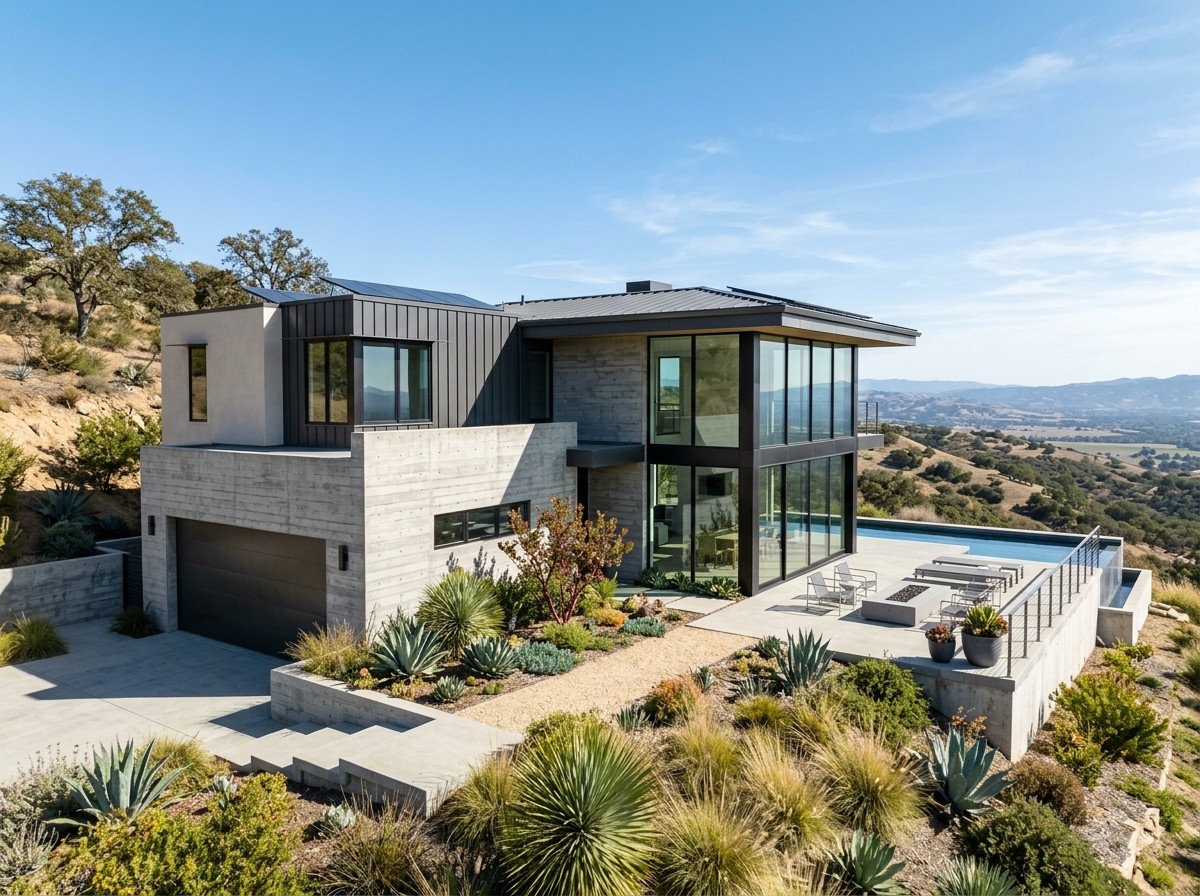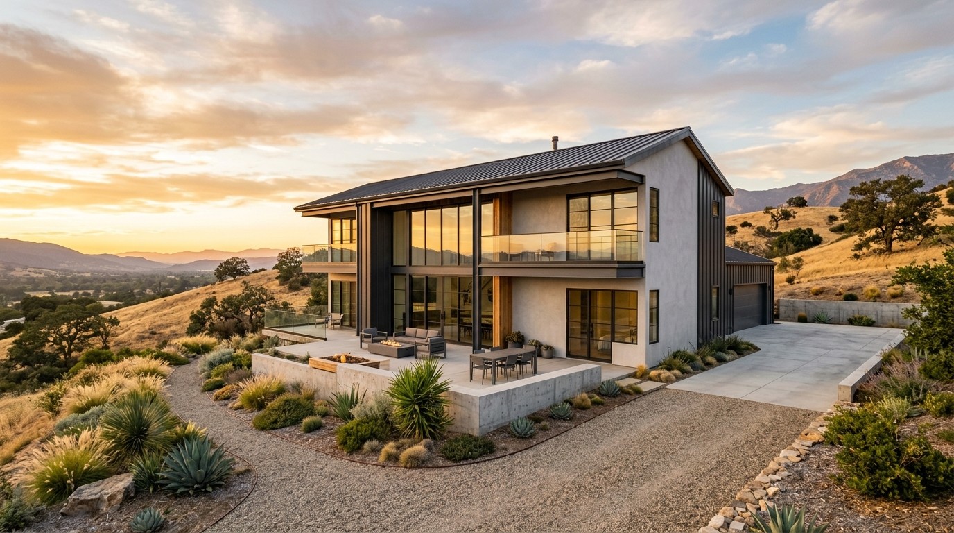 New custom homes designed around low-combustibility assemblies, ember resistance, and California wildfire guidance.